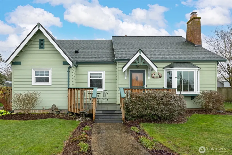 This gem is larger than it appears at 1884 sq ft and situated on 1/3 of an acre that's just 3 blocks to Blaine's downtown waterfront. Warm and inviting living room with gas fireplace, charming arched entry into dining room, completely updated kitchen with eating area and cozy adjacent den. Updated plumbing and electric throughout. Primary bedroom offers versatility, with options on the main floor or in the inviting upstairs space. Outside the property reveals a level yard with garden beds, greenhouse, fenced alley access for RV/boat parking. The large detached garage provides plenty of workshop space. Enjoy the covered patio, a perfect setting for entertaining and savoring the tranquility of your surroundings and a new place to call home.