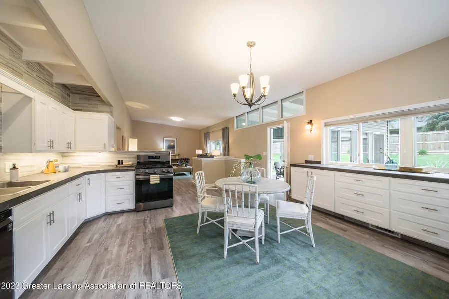 A house whisperer is pleased to showcase a turnkey midcentury ranch home situated on a quiet street end in charming Hastings. Pride in ownership it evident throughout. Large concrete driveway, low maintenance exterior, and an easy entry covered porch, leads to a generous foyer and large laundry room. Expansive open concept living area with MCM cathedral ceiling, clerestory windows, an amazing remodeled sunny kitchen with large windows, plenty of storage and countertop space, updated appliances (including a gas range). A primary bedroom with full bath is steps away from the kitchen, and two bedrooms and full bath (with handicap features including a walk-in bathtub) off the living area makes this home ideal for aging-in-place, multigenerational living and/or in-home care giving. You will love the large three-season porch with cathedral and beam ceiling with sliding doors leading to deck an...