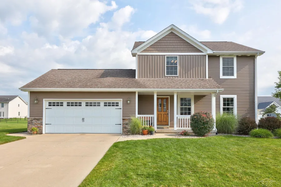 This beautifully updated and quality built 3 bedroom, 2.5 bath, 1808 sq.ft., 2 story home with a great family floorplan is nestled in a desirable Monitor Twp neighborhood. Impeccably cared for, this home offers many of the features you are looking for such as a large living room with fireplace, a fantastic kitchen with island, pantry, stainless steel appliances and beautiful hardwood floors that extend to the dining area with French doors that open to a patio that provides a great space to relax outdoors. You will love the second-floor laundry, the large primary ensuite with vaulted ceilings and double closets, and the extra clean basement with tall ceilings and egress window that is a perfect space for any number of hobbies or activities. Other specific features include an extra-large and heated 2 car garage, inground sprinkler system, surround sound system, air purification system and numerous updates such as new carpet, paint, shelving, new siding and more. This home is move-in ready!