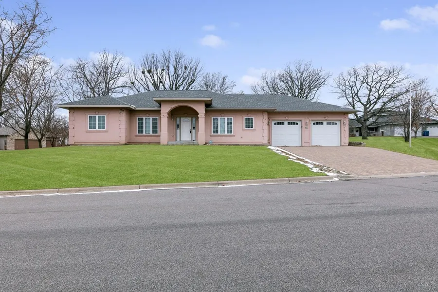 Well maintained one-level custom built home located on a generous sized corner lot on a quiet cul-de-sac. This original owner home has tons of character and well planned out design with primary suite and other additional bedrooms located in separate wings of the home. In the middle of the home is a large living room with a fireplace that is perfect for entertaining. Enjoy evenings in the four season sunroom that features a fireplace surrounded by stone. The sunroom has a door out to the back patio - perfect for summer evenings spent grilling. The home is wheelchair accessible inside with 36" doors and 42" hallways. Spacious kitchen with center island and informal dining room. Formal dining room is located directly off the kitchen that features a door to be able to close when entertaining. Oversized heated 2 stall garage features built-in storage.