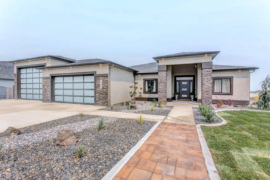This exceptional luxury residence built by Titan Homes LLC features an inviting and sophisticated open floor plan with room to entertain in style, both inside and out. The home is a 4,800 sq ft rambler w/ basement that features gorgeous high-end finishes throughout. The great room boasts a floor to ceiling gas fireplace that includes a custom stone surround with stacked stone columns and a 65 inch Art TV that is a showstopper. The spacious kitchen includes full height cabinetry with crown molding, quartz counter-tops, a large island with waterfall counter, custom sink, soft close drawers, SS appliances and a pot filler over the oven/range. It also has a spacious deck with cable railing for entertaining outside and viewing the fabulous sunsets. The main level boasts an exquisite wine cellar that is temperature controlled and includes extra storage, smart tint doors, wine bar, ice maker and a wet bar. The home also includes Harmony Luxury Plank flooring, upgraded carpets, custom accent walls, tray ceiling details, custom lighting and 8 custom barn doors, as well as surround sound with Sonos and iPad wall control. The master bedroom will wow you with the custom wall detail and accent lighting that gives you that relaxed ambiance. The master bath includes fully custom tiled walk-in shower with glass doors that vent, quartz counters, custom sinks, a lighted vanity and a custom walk-in closet. The stairwell is its own art piece and takes you to the lower level featuring a bar/lounge with quartz counters, full-size refrigerator, dishwasher, custom cabinets, custom epoxy floors and two TVs. Your creative side will run wild when you see the craft room with custom crafting tables and custom cabinets. The theater room w/ media equipment, raised theater seating, LED lit screen, speakers, projector and motorized blackout blinds make for a perfect movie night. This amazing home sits on a .33 acre lot with the most amazing sunset views, and a backyard paradise that features full block and wrought iron fencing, full landscaping, custom stone planter boxes, pavers, gas fire pit, covered deck and a fantastic HEATED SALTWATER POOL with water jet pool slide and motorized cover! Oh, and did I mention the view? The 23x22 garage does not lack and also includes a 20x39 RV bay. Located in a highly desirable West Richland neighborhood, top rated schools, parks and is close to shopping. This home literally has everything! The only thing that is missing is YOU!