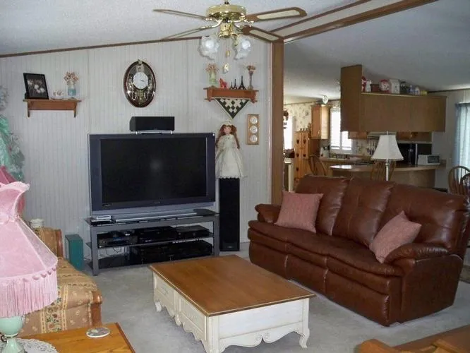 This is a very nice modular home. It consists of 3 BR, 2 Bath with oversized 2 car garage with work area. The interior is very nice with wooden window shutters and carpet in very good condition. a formal dining room is open to the kitchen and inclusive of a breakfast area. A covered patio with hot tub adds appeal to the home. It is located on a corner lot 2 blks. from downtown and 4 blks. from school. The central heat & air along with the roof are new. This is one fine home.