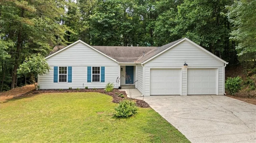 Welcome to this adorable 3-bedroom, 2-bath ranch-style home nestled in the highly sought-after Woodstock community. Perfectly situated near top-rated shopping, dining, and beautiful parks, this home offers both convenience and comfort. Step inside to a spacious living area featuring vaulted ceilings, a cozy fireplace, and brand-new LVP flooring throughout the home. The entire interior has been freshly painted, and all-new lighting fixtures add a modern, welcoming touch. The kitchen boasts white cabinets, stainless steel appliances, a new dishwasher, and a sunny breakfast nook for casual dining. The primary suite is a true retreat with its vaulted ceiling, walk-in closet, and an ensuite bath complete with dual vanities, a soaking tub, and a separate shower. Two additional bedrooms share a full bath, ideal for guests, kids, or a home office. Additional recent upgrades include new garage doors, a new HVAC system installed in May 2025, and a newer roof (just 5 years old). The home's exterior has also been completely repainted, boosting curb appeal and durability. Enjoy outdoor living in the private backyard that's partially wooded, offering both tranquility and charm. Don't miss this opportunity to own a fully updated, well-maintained home in one of Woodstock's most desirable areas!
