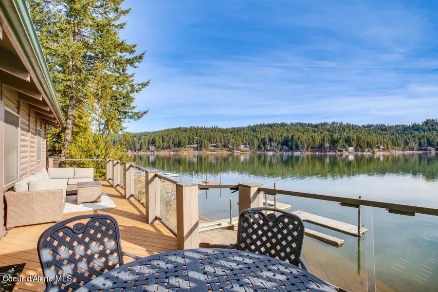 Waterfront living in the highly desirable Rockford Bay on Lake Coeur d'Alene. This beautifully updated home features an expansive open floor plan with vaulted ceilings, creating a bright and airy atmosphere which includes 2 bedrooms and a large bunk room. Enjoy stunning lake views from the large deck areas and revel in the convenience of level beachfront access. This home comes fully furnished and boasts 90 feet of deep-water frontage, perfect for all your aquatic adventures. With excellent road access, ample onsite parking, and year-round appeal, this property is an exceptional find. Don't miss your chance to own a piece of paradise in Rockford Bay.