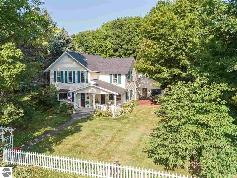 Thought you couldn't have it all in the Village of Suttons Bay - think again! 4 elevated Village lots with room for a pool on covetted Saint Marys! 4-5 bedrooms including 2 ensuites, 4 total baths, and Short term rentals ARE allowed in the Village. All the charm of a true vintage home with charming alley access, huge outdoor entertaining options, garage, all the updating completed, so all you need to do is enjoy! Main floor den with a closet can be bedroom #5 and a 3/4 bath on the main floor, see the floor plan. So many updates including heated floors, mudroom updates, "Silestone" quartz countertops, appliances, cabinet resurfacing, bathroom updates, many newer windows, water filtration, insulation, fireplace redo, trees addressed, garage cupola - attention to detail counts with these meticulous owners. Walk to beaches, destination dining and shopping, bike the Leelanau Trail, The Bay Th...