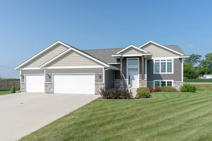 This 5 bedroom, 3 bathroom home is located in upper North Mankato's desirable Rolling Green neighborhood. Located on a private cul-de-sac, this beautiful custom built split level home is on a .33 acre lot with over 3,000 finished square feet. This is not your typical split level home. Step inside and you will discover an open concept living area with beautiful hickory hardwood floors throughout the living room, dining area and kitchen. The kitchen boasts granite countertops, stainless steel appliances, a large center island, pantry and knotty Alder soft close cabinets/drawers. ON the same level are two bedrooms and a full bathroom. There is also a master suite with a tray ceiling, walk-in closet and private 3/4 bath with granite countertops and tiled flooring. Step down the wide staircase into an additional 1,350 finished square feet that flows into a spacious family room with daylight windows where you will find a stone faced gas fireplace and walkout with a concrete patio. There are 2 more large bedrooms and a convenient 3/4 bath with granite counters and tiled flooring. Additional storage space can also be found downstairs. A three stall heated garage, rustic alder woodwork and doors, a landscaped yard with custom concrete edging and irrigation system are just a few of the added bonuses when purchasing this home.
