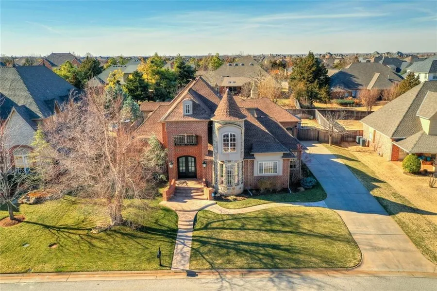 WATER VIEWS - SWIMMING POOL - "GUEST WING" - GATED COMMUNITY!!! Surrounded by LAKE ACCESS and walking trails, this home has it all! The UNIQUE feature to this floor plan is the GUEST WING - a true M-I-L layout with its own bedroom, living room, bathroom suite & office! It's perfect as a guest apartment setup for multi-generational living. Throughout the rest of the home, you'll enjoy the luxury features that are hallmark to Allenton Homes. Handscraped wood floors, pronounced wood trim & craftsmanship at every turn. The living room, kitchen & dining are all very spacious and flow together for brilliant entertaining! The primary bedroom is privately located with a large bath suite & wrap-around closets connecting to the laundry & garage areas. Neighborhood Amenities: 18 acre spring-fed lake, walking trails, pool, clubhouse, ponds, fishing pier & playground. Located in highly sought Deer Creek Schools, only minutes to Turnpike, Hefner Pkwy, Quail Springs Mall & Mercy Health Center.