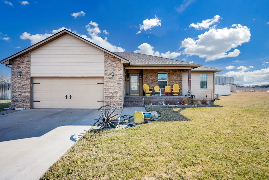 Check out this one owner home built in 2010 that is on a cul-de-sac in a neighbor friendly area in South Hutchinson. When you walk into this home you will notice the open concept floor plan that leads into the beautiful kitchen where you’ll find granite countertops, built in gas stove and a full appliance package with high bar seating that is great for entertaining! The master suite has a recessed ceiling, a full bathroom and a huge walk in closet! There is a nice sized laundry & mud room that is conveniently located on the main floor of this home that includes the washer & dryer! The AC unit has been updated and a new roof was installed in 2020. There is space to add your own touches in the full unfinished 1,397 square foot basement that has the capability to add 2 more bedrooms each with egress windows and another bathroom that is already roughed in for you to make this a 4 bedroom 3 bath home. There is also a plumbed in area in the basement that would make a great wet bar or extra kitchen area for even more entertaining space. Let's not forget the outside! You will enjoy the extra large fenced in back yard that has the Rain Bird sprinkler system that’s on it’s own well. Call today for your private showing as this beautiful home is priced to sell!