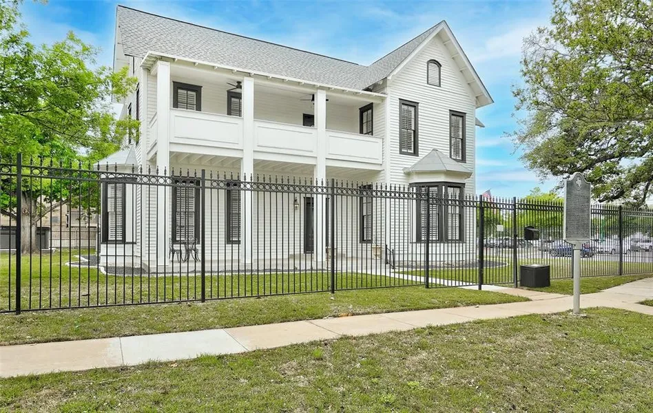 Step back in time and experience the charm of this stunning 1867 historic home in the heart of Georgetown. Situated on a corner lot, this two-story home has been updated while still maintaining its original character. With five bedrooms and three bathrooms, this home has plenty of space for everyone. Entertain guests in the large dining room and spacious living room which opens up to your beautiful kitchen. Featuring two primary suites, one on the main floor with a luxurious claw foot soaking tub and the second level primary bedroom upstairs with exceptional views, charming built-ins, an oversized jetted tub and a walk-in shower. In the evenings relax and enjoy the upstairs covered balcony while taking in the beautiful views of the surrounding area. The outdoor area features two covered patios, a completely fenced in yard, stone fireplace and a 18ft Michael Phelps Swim Spa. Additional bonuses are complete irrigation, water softener filtration system, 200 Amp Sub Panel, french drain around the perimeter of the home, a 36ft deep 4 car garage, RV hookup and an upstairs loft with endless options. Don't miss the opportunity to own a piece of history in this prime location, walkable to the most beautiful town square in Texas!