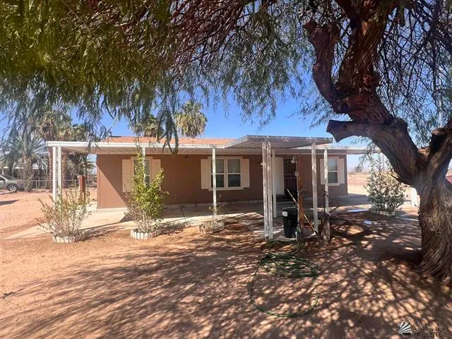 Discover this 3 bedroom 2 bath double wide manufactured home, perfectly located on an expansive double lot boasting desert landscaping and captivating views of sunrises and sunsets. Must see to appreciate! Includes RV access hook up.