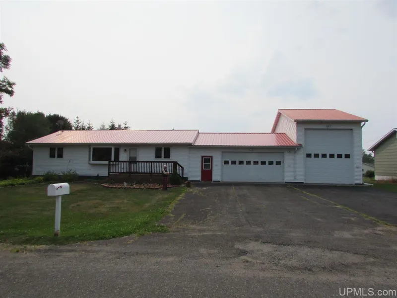 Three bedroom, 1.5 bath home with full basement, 3+ car attached garage on a double fenced in lot in nice residential neighborhood in the Village of L'Anse. Improvements include new floor cover and front deck. Home has newer vinyl windows, siding, metal roof, seamless gutters and paved drive. Third stall in garage is oversized WITH 16' garage door. Great for camper or boat storage. Full basement ready to finish. Central air in home & garage with garage heated and insulated. Move in condition. Must see to appreciate.