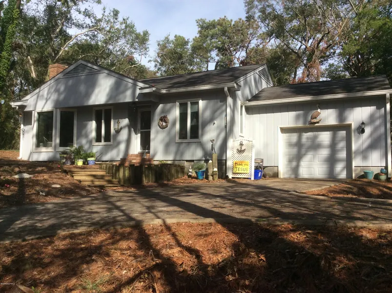 Charming home located in the heart of Pine Knoll Shores. Three bedrooms, two baths, open living area with cathedral ceiling in living room featuring large bay window and beautiful brick fireplace (gas). Open kitchen with storage, built in shelves, large peninsula with room for 3 stools and separate dining area. Large screen porch is the width of house and overlooks private nature view and patio. Rinnai tankless hot water heater, water softener