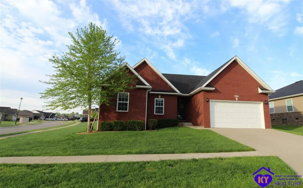 Awesome floor plan home awaits the You the new owners. One owner ranch with full basement has tall ceilings and real wood floors in main living areas. Bedrooms offer carpeting while bath and laundry are tiled. The kitchen has gorgeous granite countertops, upgraded stainless steel appliances and the breakfast bar looks out towards great room with it's gas log fireplace. The bedrooms are a split design which has 2 on one side of the home while the main suite is on other side for more privacy. Main bedroom does have walk in closet and spaious bath. In basement enjoy the Playroom/Family room or the tons of storage and workspace. It even has rough in for future 3rd full bathroom. Outside home is tastefully landscaped. Rear yard has 6 foot wooden privacy fence so you can relax or grill out on your deck. Other features of the home is the whole home water softner/filtration system and yes you can see who is at the front door with the wifi camera. Neighborhood has fiber optic so you can even work form home or stream your most demanding games! Only few minutes drive to Fort Knox or Elizabethtown. Wifi Security Camera, Great Room TV & Mount remains. Owners will grant possession 18 July 6pm