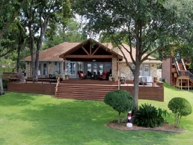 DOMESTIC BLISS. This instantly appealing lake home is set on a heavily wooded open water site, and exudes the feeling and character of what lake enjoyment is all about. The fabulous open floor plan offers three full bedrooms, two full baths, and large two car garage. Additional features include combination living/dining/kitchen area, lakeside master bedroom, custom cabinetry, stone fireplace, ceramic tile flooring, soaring ceilings, and walls of glass. Outside you will quickly appreciate the covered wood deck with fireplace, extra decking, and breathtaking water views. Your favorite water craft is easily accommodated in the double boathouse with additional two capacity power watercraft lift. If you are looking for a low maintenance lake retreat or permanent home - you have just found it!! Inquiry Code: 77041