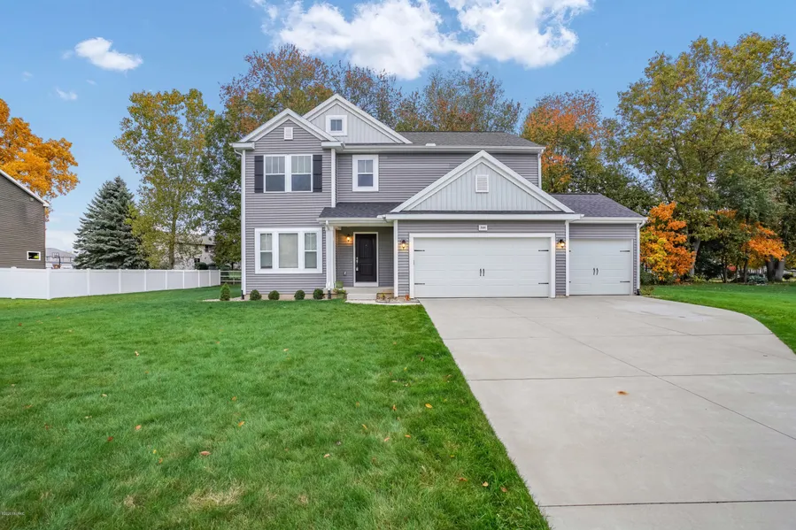 Stunning 2 story with 3 car garage in the very popular Applegate Trails. This home is only 3 years old and has an open floorplan with a large great room, dining nook and kitchen. Kitchen has castled cabinets, center island, granite countertops , tile backsplash and select stainless steel appliances. Easily accessed from kitchen are a large mudroom and separate walk in pantry. Den with French doors. Powder room completes the main floor living space. Master suite, with private full bath featuring a dual vanity and a large closet, 3 more large bdrms, another full bath and laundry create the upper level. Basement plumbed for a bath and is ready for you to finish. A large patio creates a lovely outdoor living space. 10 year structural warranty transfers to the next owner of this amazing home
