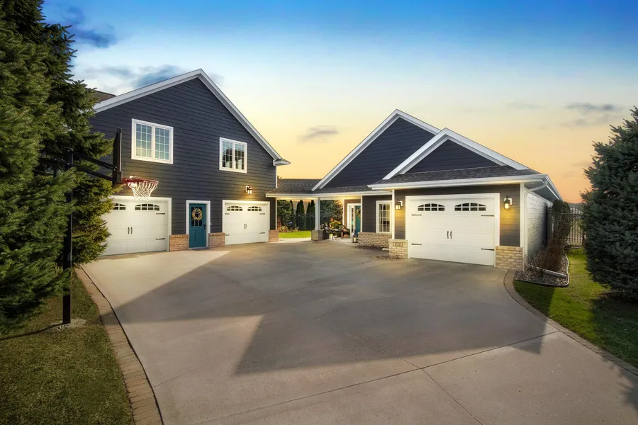 At 918 Charles Ct awaits this stunning 6 bed / 4 bath custom built home. 9 ft ceilings and a gas fireplace welcome you in. The vaulted dining room & kitchen with granite countertops, raised eat-up breakfast bar, & pantry will surely impress. The master suite boasts tray ceilings, double sink vanity, & a WIC. The finished LL family and rec rooms are primed for entertaining. You'll enjoy sunsets on the patio off the walkout basement and find serenity in the professionally landscaped courtyard. The well-executed carriage house boasts countless additional possibilities. All this on a private cul-de-sac just two blocks from Meier Farms Neighborhood Park. This home is sure to delight with upgrades around every corner. You must view this amenity filled home to fully appreciate all it offers!