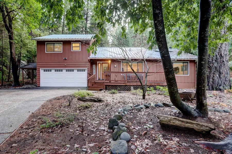 Impeccable and beautifully maintained home by Scotts Flat Lake which has been used as a vacation home! Beautiful hardwood floors throughout the main level which has the formal living room, huge family room with vaulted ceilings and exterior access and a great cooks' kitchen with stainless appliances and rough edge granite Counters! Dining area can seat a happy group of 10! Upstairs bedrooms including a fantastic, romantic primary bedroom suite and two guest bedrooms, plus a sweet little hideaway! Two-car garage, one-car carport and RV parking! All underground utilities and fire hydrant at the front of the property! Metal roof, lovely front deck and huge, private patio in back yard! 8 minute walk to the boat ramp at the lake and one of the best neighborhoods to live in! Roads are always plowed in the winter and extra bonus is the volunteer-based low-cost homeowner association that gives access to the private Lost Mine Lake, discounted propane and much more. Move right in and start enjoying the fantastic four seasons in Nevada County!!