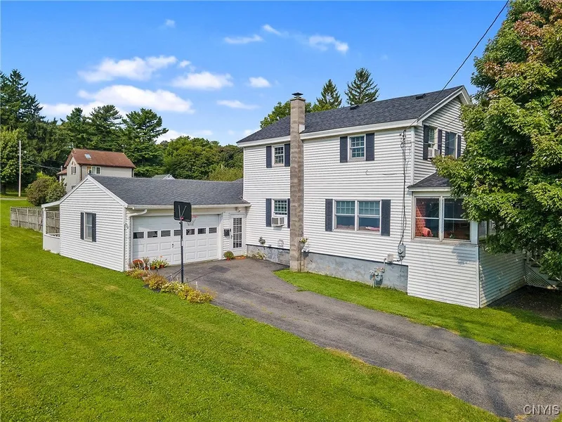 Charming home for sale located in the City of Oswego. This home features three bedrooms and one full bathroom. Cozy enclosed front porch for relaxation. Eat-in style kitchen with much character and decorative ceilings. All stainless steel appliances included in the sale. Large kitchen island and built in cabinets with entertainment space. Formal dining room and family room. First floor laundry room. Three bedrooms and one full bathroom located on the second level of the home. Fully fenced in-ground pool and patio space for leisure. Over-sized two car attached garage and blacktop driveway with mud room for convenience. Major updates include a new hot water heater, new sewer clean out installation, AND MORE!