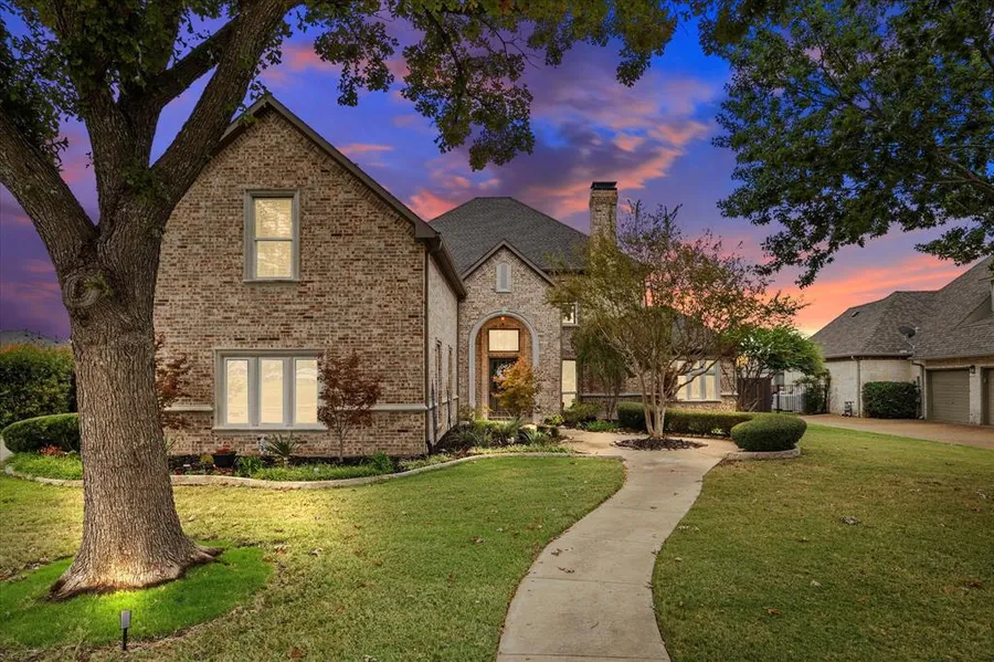 Meticulously maintained 4-bedroom, 4-bath custom brick home, set on a beautifully landscaped .34 acre lot in a premier resort-style community with swimming pools, tennis-pickleball courts, playground, & golf course. Ideally located near top-rated schools, shopping, & scenic Lake Ray Hubbard. Enter through grand foyer with soaring ceilings, hand-scraped hardwood floors & majestic staircase. Entry flows seamlessly into elegant living area featuring stately cast-stone fireplace & an inviting dining areaperfect for family gatherings & entertaining. Butler's pantry connects the dining area to the dream kitchen, which boasts a center island with breakfast bar, top-of-the-line commercial stainless steel appliances, & opens onto a spacious family room with fireplace. Home office provides a serene & productive workspace for those working remotely. Expansive master suite includes a cozy sitting ar...