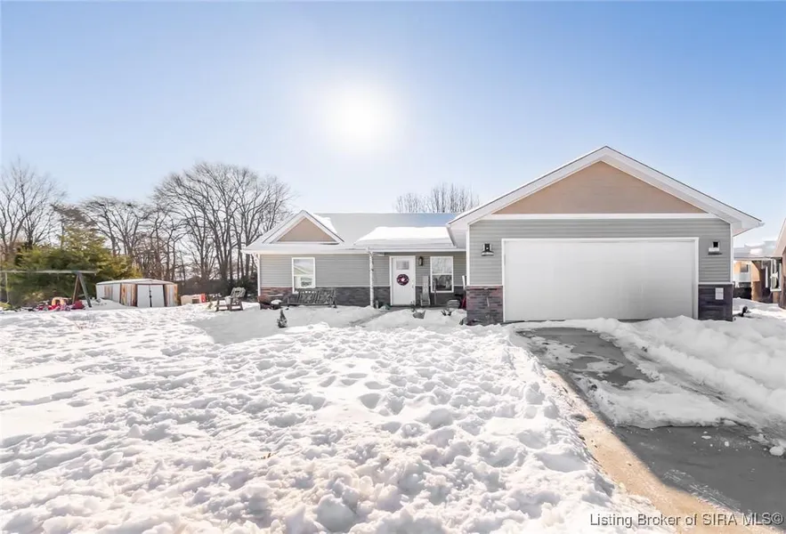 Discover your dream home in this stunning one-level residence, boasting 1,400 square feet of thoughtfully designed living space. Enjoy the benefits of a split floor plan and vaulted ceilings that enhance the open layout, perfect for both relaxation and entertaining. Nestled on a low-traffic cul-de-sac street, this maintenance-free exterior home offers not only convenience but also a sense of community with great neighbors. The spacious primary bedroom features a generous walk-in closet and a private bath, providing a peaceful retreat. Cook up a storm in the upgraded kitchen, complete with sleek stainless steel appliances, including a double oven, an inviting island, and a beautiful butcher block counter. The easy-to-clean laminate floors throughout ensure low maintenance and durability. With a two-car garage and a private rear yard (one of the largest in the community!), this home is the...