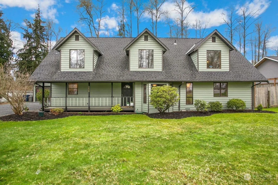 Living much larger than public records imply, a thoroughly remodeled modern Farm House with main floor living, formal dining, eat-in kitchen w/all new appliances, gorgeous Acacia counters, huge bonus room, B/R & 2 baths?++big entertaining deck thru French Doors. Upstairs, the Primary suite w/new 3/4 bath, loads of closet space, two more B/Rs, 1/2 bath++ another huge bonus/family room! Room sizes are generous. Brand new roof, exterior restoration & paint (2022); interior painted, carpeted throughout and hardwoods refinished (2023); beautifully tiled main & en suite baths. A minute to Lundeen Pk-public lake access & new playground. A huge lot surrounded by public lands and wetlands? eagles+owls?this is a sanctuary of quiet and privacy!