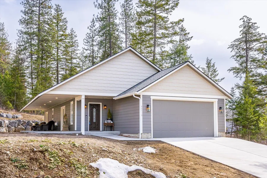 Beautifully Appointed contemporary single level home with views of Loon Lake from top of property. Like new home built in 2021. Features include surround sound system in all rooms as well as on the 409 sqft. covered patio, and LVP flooring throughout. The kitchen features a farmhouse sink, soft close doors and drawers on all cabinets. The island is good sized with seating for two. The open concept living area is warm and inviting with custom shelving, beautiful gas fireplace and french doors out onto the patio. One of the secondary bedrooms is being used as an office. The closet doors are in the garage ready to be installed if you prefer. The home owner had a beautiful rock wall installed with stairs up to a fire pit area, also providing access to the rest of the yard. Fully finished heated garage with utility sink. Lake access would need to be arranged through one of the resorts. Granit...