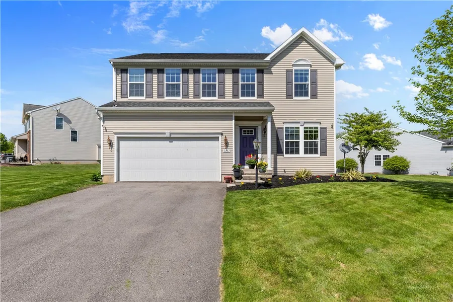 There's something magical about 3151 Peacock Circle, Gananda NY —it's more than a house, it's the kind of place that instantly feels like home. From the moment you arrive, you're welcomed by a spacious lot, classic curb appeal, and a covered front porch that leads into bright, airy living spaces. With 9-foot ceilings throughout the first floor and a vaulted 11-foot ceiling in the sunroom, every room feels open and full of light. The heart of the home is the expansive kitchen—complete with a center island, granite countertops, and exceptional cabinet storage—perfect for everyday meals or entertaining. Adjacent to the kitchen is a large sunroom that leads to the low-maintenance Trex deck, overlooking a beautifully landscaped backyard with raised garden beds and a greenhouse. The cozy living room features a gas fireplace and flows seamlessly into the rest of the main floor. Upstairs, you'll find four generously sized bedrooms, all functional and thoughtfully designed. The primary suite is oversized, with a walk-in closet with a window and a private en suite bathroom. The second-floor laundry room adds everyday convenience, while a finished 600 sq ft basement provides space for a home gym, media room, or play area. Additional highlights: * Less than 15 min drive to wegmans/target and other necessities. * 9-ft ceilings on the first floor; 11-ft vaulted ceiling in the sunroom * Finished 600 sq ft basement and second-floor laundry * Trex deck, greenhouse, and raised flower beds * Huge master suite with private bath and natural light walk-in closet * Oversized kitchen with granite island and abundant cabinetry * 2-car garage and large lot on a quiet, sidewalk-lined street * Nestled in a corner lot Schedule your private tour before it's gone.