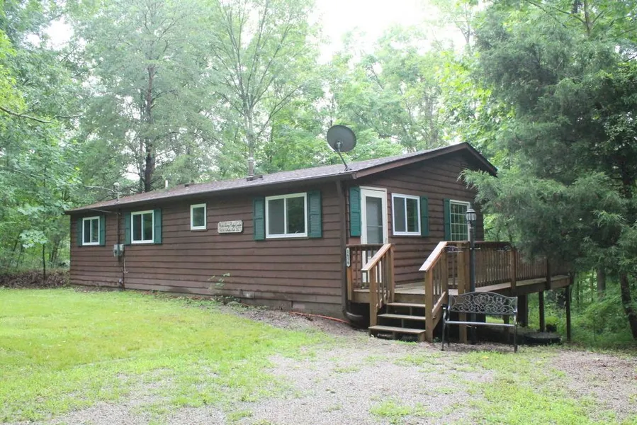 "Hide-a-way Ridge Cabin" Affordable and ready to move into. Dining area is 23x10 and could have many uses. Kitchen has tiled countertops, laminate flooring, oven, dishwasher & microwave. Carpeted living area with atrium door to outside covered & open deck. Deck is wired and reinforced for a hot tub. Master bedroom bath features huge tiled shower with a rain head faucet. Laundry hookups in utility room. Newer vinyl windows, freshly painted interior. Access to Greenbriar Lake.