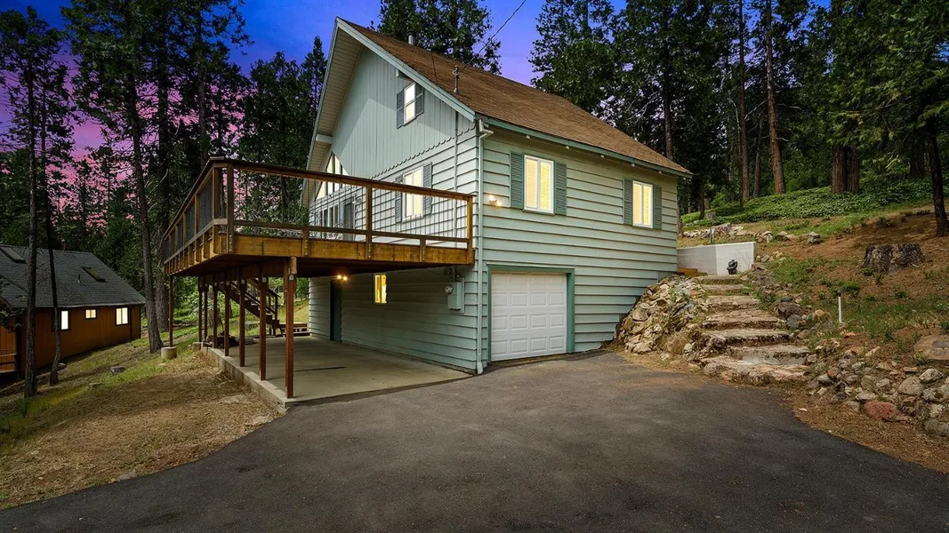 Come see your charming getaway!! This cabin features an open floor plan with loft. There have been many upgrades including dual pane windows, laminate flooring, bathrooms, insulation, paint inside and out, driveway replacement, decking (front and back) and more. The large deck (made of composite decking) is great to stargaze or to entertain. You can comfortably have 10 guests and there is plenty of parking. You can walk to Fly In Lake for old fashion swimming or enjoy nature. The Snowflake Lodge offers a pool, lake for swimming, shuffleboard, tennis and basketball courts. If you're looking for a place to get out on your own or bring the family, this is it. You are within minutes of Fly-In Lake, Sequoia Woods Country Club, Snowflake Lodge and California Big Trees. 20 min to wine taste in historic Murphys; 30 minutes to Alpine Lake; 45 minutes to Big Bear ski resort.