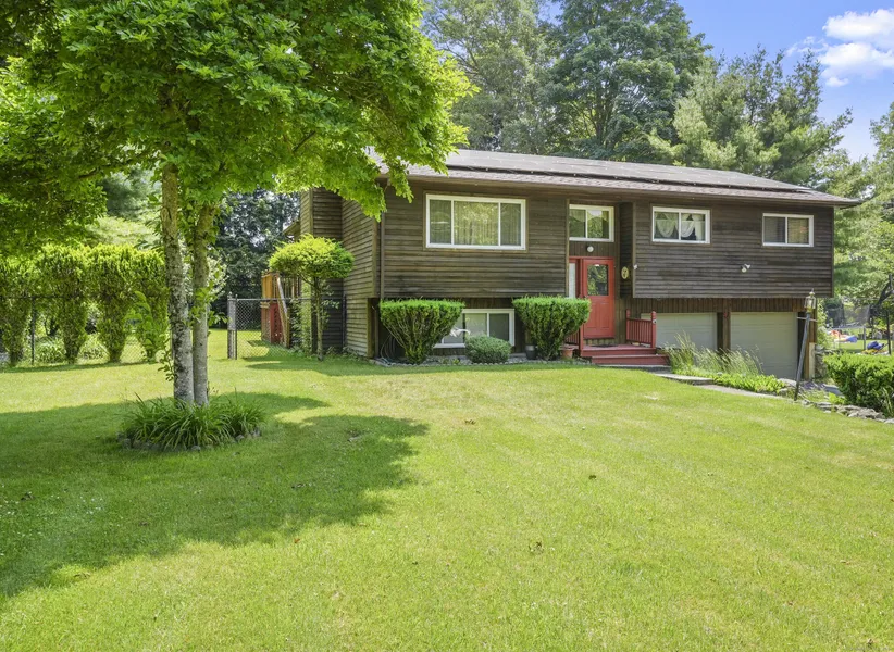Start living your dream in this 3 Bedroom, 2 Bath Contemporary Raised Ranch in Pruchnik Estates, complete with private beach rights. The open floor plan allows for the Living Room to flow into the Dining Room, and then into a 20x14 Sunroom with Cathedral Ceiling. The addition of the Deck off the side of the Sunroom, makes this home a great space for entertaining. Trapezoid Windows are located in the Dining Room and Sunroom. The Sunroom has 5 Sliders, which are perfect for a possible Deck off the back of the home. The Kitchen with laminate flooring, and Breakfast Bar, is the perfect location to contemplate the day's events over a freshly brewed cup of coffee. The Primary Bedroom is spacious, complete with a full bath. 2 other Bedrooms with a full bath complete the main level floor plan. The lower level Family Room is a great space for game night, complete with a Pellet Stove. A Laundry Room and access to a 2 Car Garage complete the lower level floor plan. Wall-Wall Carpeting is throughout the Home. Some of the exciting features of this Home include a 3 year old Roof, Solar Panels, 200 Amp Service, newer Garage Doors, and a Shed. This is a beautiful area to walk in. Down the road is gorgeous farm land, yet your are 10 mins to the charming town of New Milford, complete with a movie theater, restaurants, a Town Green, access to Town and State Parks, and access to Candlewood Lake. New Septic to be installed by Closing.