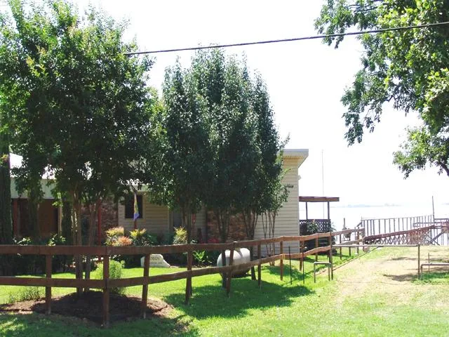 Lake Buchanan waterfront, 2 bedrooms, 1 bath that is located next to the Paradise Point Subdivision Home Owners Park. This is one of the best views on Lake Buchanan of Garret and Shaw Islands. Lighted pier with picnic table in place. Fish cleaning station in the back yard and outdoor shower to rinse the sand away. Open inside floor plan with the living room opening up to the kitchen and vaulted ceilings thru out. The flooring is carpet and tile and the gas log fireplace is perfect for those chilly winter mornings. Many updates were made in 2008, including new metal roof, new A/C wall units, and granite tile countertops in the kitchen. Low voltage landscaping with irrigation system is in place to maintain some of the best landscaping in Tow! The small yard gives you more time to play on the water. The washing machine and dryer are located in the outdoor storage building. The yard is fence...