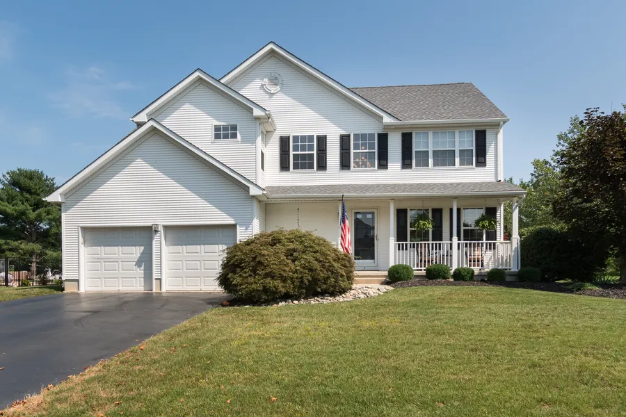 Neat and trim landscaping leads you to the inviting covered front porch of this classic colonial in the sought after neighborhood of Washington Leas. Step inside to a two-story, sun- splashed foyer graced by a pretty turned staircase and glossy hardwood floors, The lovely floors continue into the generous living and dining rooms with big picture and bay windows to let the light in. The kitchen has a handy wraparound counter, a casual dining area within a window bay, a stainless steel range and refrigerator, and plenty of cabinet storage space. Adjacent to the kitchen is the cozy and bright family room showcasing a vaulted ceiling and a glass door leading to the backyard. Highlights of the outdoor space are the wide open views and a paver patio that is perfect for summer barbecues. A handy laundry room completes the first floor. On the second floor, three sunny bedrooms include the main suite with 2 closets and an updated private bath. A crisp white tiled hall bathroom services the others. A soft palette of colors throughout creates a pleasant retreat. Use your design and imagination to easily expand living space with the partially finished basement. The two car garage offers more with pull down access to attic space for storage. Recent updates include a new roof and HVAC.This beloved neighborhood is just minutes from restaurants, shops, and major commuting hubs. Fun places to visit nearby include Philly, NYC and the Jersey shore!