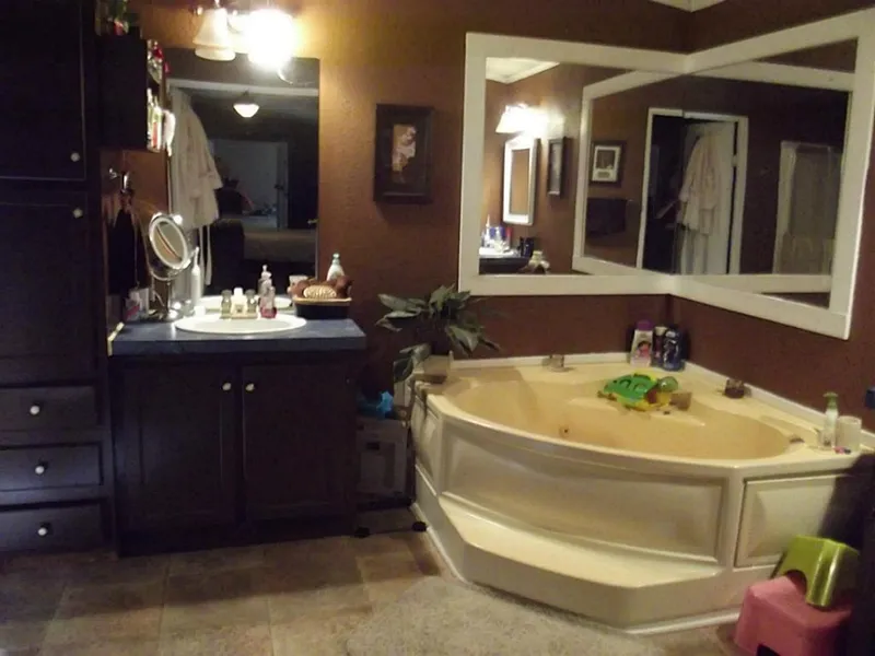 This is an absolutely huge, HUGE doublewide 1997 mobile home. The owner has provided a long list of upgrades and other items added. Entering from the front door into a large living area there are 3 nice bedrooms and one bath to the left and straight ahead is a dining area off the kitchen. What makes this floor plan so awesome is tucked behind the kitchen is a very large second living area (approx. 26 x 13) with a fireplace that is completely seperate from the rest of the house but adjoins the very nice master suite with ensuite bath, garden tub, seperate shower, double sinks and divided by nice french doors. There are two cleared lots with some nice trees and covered RV parking. This is really alot of home for the money. No loan available. Cash or owner may consider carrying with very large down. *All info provided by owner and must be verified.