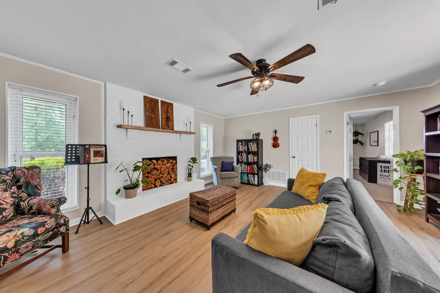 This home has undergone significant upgrades to enhance its appeal. A total re-wire was completed before the current sellers moved in, ensuring a modern and safe electrical system. In 2021, a brand new roof, water heater, and HVAC were installed, further adding to the home's value and functionality. The kitchen is a culinary enthusiast's dream, boasting double ovens that provide ample cooking space and flexibility. The heart of the home, the Great Room, captivates with its natural wood-burning fireplace and built-in shelving, creating a cozy and inviting atmosphere for gatherings and relaxation.