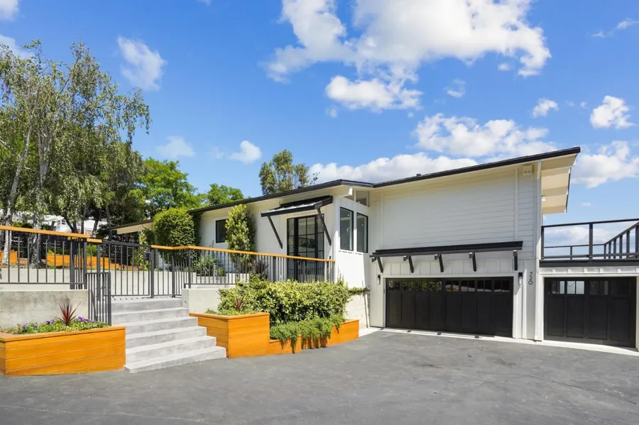 Completely reimagined & remodeled modern Palomar Park home with breathtaking Bay views & meticulous architectural details throughout. Urban materials like steel & concrete are grounded with natural elements of rich woods & glass to create a modern yet timeless masterpiece, rooted in the tranquil hills of Silicon Valley. Natural light pours through windows & skylights throughout the open floor plan. Linger over beautiful views from almost every room, especially in the dual master suites flanking the ends of the home. Amenities include an office that serves as 4th bedroom, downstairs family room & bonus spaces for wine room plus a gym with separate access. The custom gourmet kitchen features a large center island & breakfast nook that flow into the living & dining room & spill outdoors through telescoping doors. Expansive patio & decks overlook a large, tranquil backyard. Step into the gat...