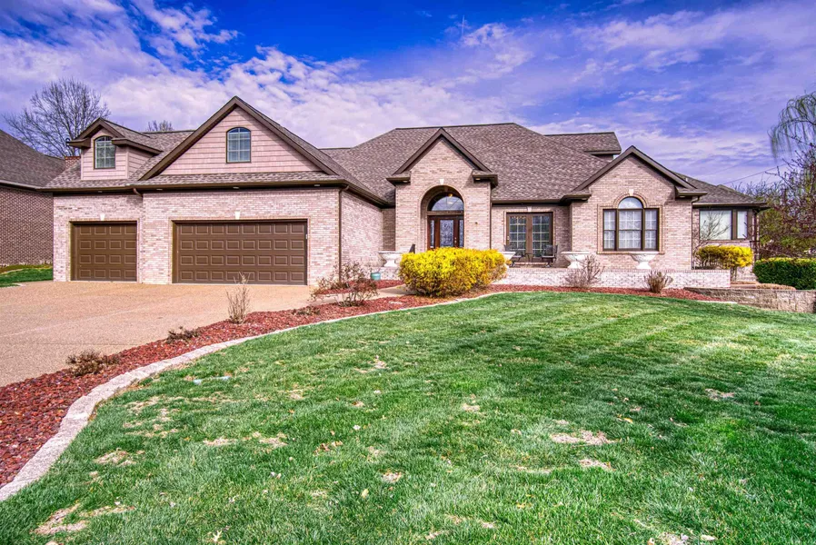 Would you love to live at 4444 Partridge Place? This beautiful four bedroom, four and a half bathroom home sits on a cul-de-sac next to a private neighborhood pond. You are immediately greeted by the spectacular foyer, Brazilian hardwood flooring, and pillared formal dining room with a formal sitting area adjacent. Continuing through the home is the great room with its cathedral ceiling, large windows with natural light, gas fireplace and built-in bookshelves. The great room flows into the eat-in kitchen. The kitchen boasts travertine flooring, granite countertops, Amish cabinetry, stainless steel appliances including gas range with hood and warming drawer. There are also two additional large closets, perfect for a pantry or storage. Seating is never limited here as the island also serves as a breakfast bar. There is a sunroom and office space connected by French doors just off the kitchen. The owner suite is conveniently located on the main floor, complete with crown molding, en suite bathroom, and access to the back patio. The owner bath is sure to wow with its high ceilings, twin vanities with copper sinks, glass standing shower, jetted tub, small gas fireplace, and a spacious walk-in closet with access to the patio as well. Completing the main level is an additional bedroom with an en suite bathroom. Heading up the beautiful staircase are the remaining two bedrooms and a large L shaped bonus room. The first bedroom has a built-in desk, walk-in closet, and attached bathroom. The second bedroom has a walk-in closet, attached bath, and a hidden room behind a built-in bookcase. Yes, a hidden room! Perfect for a gym, reading room, or just a hideaway. At the very end of the hall sits the bonus room offering plenty of space for whatever else you may need. The private backyard and patio seating all around the home, allow you to enjoy the beautiful scenery no matter where you are. This home truly is one of a kind!