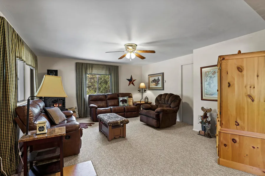 Experience the charm of Strawberry in this well-maintained two-story home, featuring 3 bedrooms and 2 full bathrooms. This residence perfectly blends comfort and style, boasting a cozy fireplace in the living room, ample closet space, and extra storage.The upstairs level includes a spacious open room that has a private balcony with composite decking, offering a view of the pavered patio that leads to a firepit area.Convenience is key with a carport, a durable metal shed, and an additional wooden shed for extra storage and parking.
