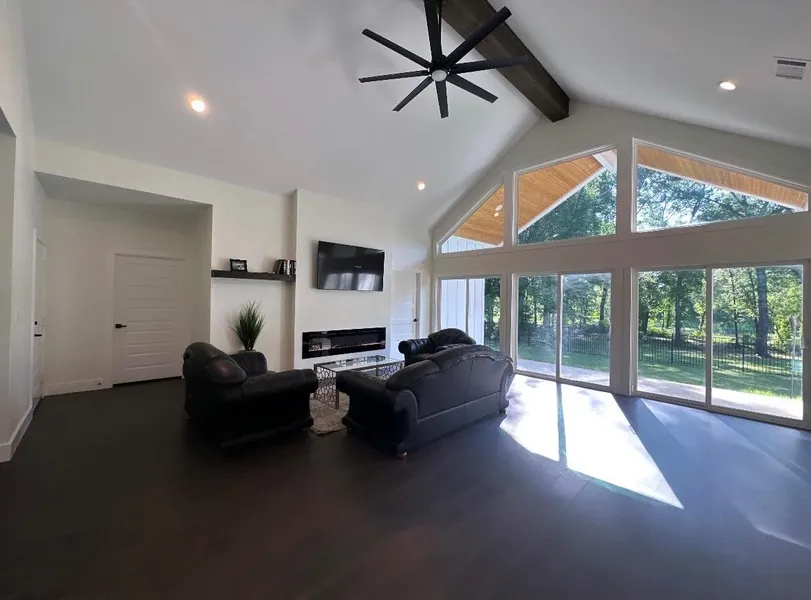 The ideal family home! This property will make you feel relaxed upon arrival. With 3 bedrooms, 2 bathrooms, and a 2 car garage. A fire place in the living room, high vaulted ceilings, and floor to ceiling windows; showing the beautiful backyard views. The kitchen has a nicely sized pantry, island, stainless steel appliances, and off to the dinning room. The utility room offers a washer and a dryer. The primary bedroom has a ensuite bathroom with luxury tile, a large walk-in closet, and a safe room. The safe room offers security cameras that are installed all throughout the exterior of the property. The other two bedrooms are nicely sized with walk-in closet. The backyard is very private, waterfront with a lot of trees, and lots of fishes to catch! It is fenced, sodded, with a sprinkler system. The patio is covered with a walkway leading to a bonfire sitting area. The HOA offers a boat ra...