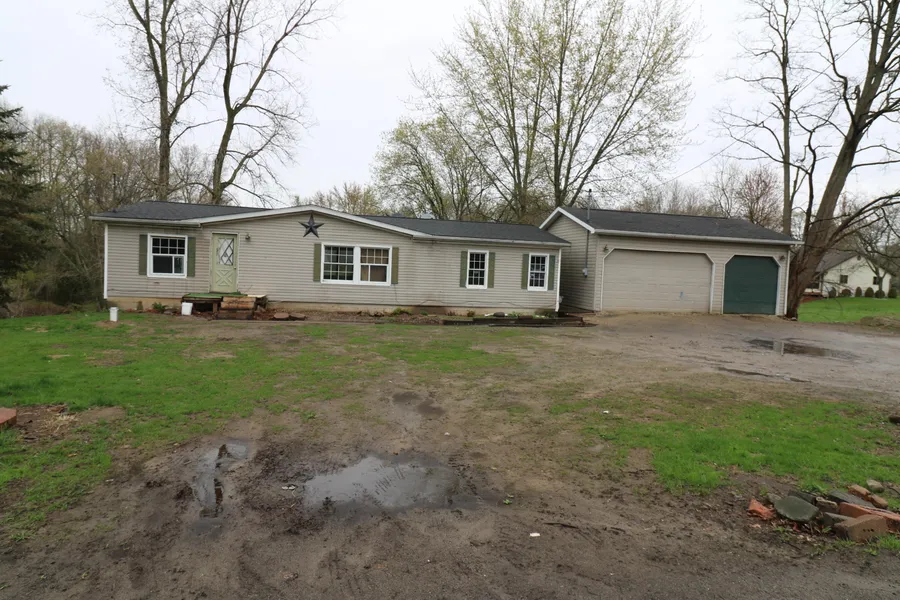 Location, Location, Location. 90 feet of frontage on a quiet Channel on Wolf Lake which is part of an all sports lake chain with great fishing. 3 bedroom 2 bath up and 1 bedroom 1 bath in walkout. Desperately in need of a total remodel! Walkout was formally rented as a separate unit. Everything needs to be renovated but a tremendous opportunity to profit with your sweat equity. 3 car garage and wonderful views.