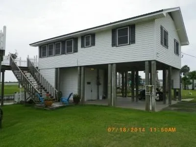 Nice 2 bedroom 1 3/4 bath home loaded with furniture. Would make nice week-end getaway place for entertaining or permanent home. Large upper deck with magnificent views of the Intra-Coastal Waterway and East Matagorda Bay.