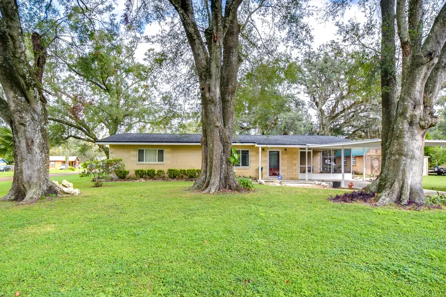 Peaceful, country setting. Corner lot with a cement block home and large oak trees. Walk in the front door to an open floor plan with the living room, dining room and kitchen. The kitchen has been remodeled with newer cabinets, countertops and appliances. The home has three bedrooms and two bathrooms. The ceilings are tongue and groove throughout the home. At the back is a laundry room. The roof was replaced in 2015. The home also has newer wood plank flooring, and cedar closets. The exterior of the home has a fenced back yard, large storage shed and paved driveway PLUS a large side yard. This home has access to I-75 for Ocala and Tampa, SR 50 toward Orlando and US 98 to Lakeland. It is situated near the Withlacoochee River, the trail leading to Inverness, and the Croom hunting preserve! But best of all there is no HOA fee. Don't let this one get away! call now for an appointment to view this home.
