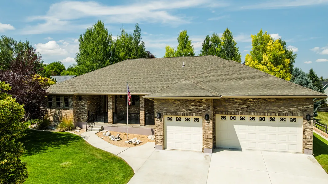 Beautifully crafted custom brick home in one of Sheridan's most desirable neighborhoods—Mountain Shadows. Offering 3,700 sq. ft. of refined living space and a spacious 1,500 sq. ft. three-car garage, this home combines comfort, functionality, and elegance. Enjoy sweeping views of the Bighorn Mountains across a serene open park area to the south. The open-concept main living area is perfect for entertaining, featuring custom built-ins, a chef's kitchen, and seamless access to the very large backyard. The lower level includes two generously sized bedrooms connected by a Jack and Jill bathroom, a large family room with a cozy fireplace, and a built-in television and sound system—all included.
