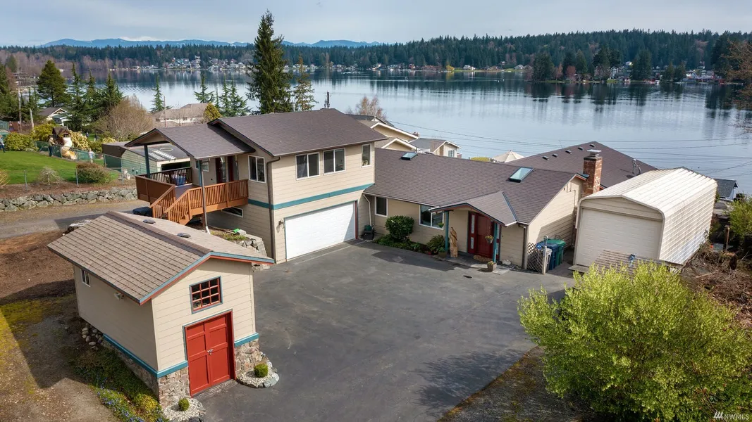 Incredible Lake Goodwin View property! This beautifully remodeled home on 1/3 acre lives very private. The main living area has been completely remodeled. Quartz island & countertops, new cabinets, new appliances, vaulted ceilings, new floors, lighting & paint. French doors lead you out to the very large, covered deck that has the most incredible views of Lake Goodwin. Perfect for entertaining or just relaxing & enjoying the scenery & the bald eagles soar. Primary bedroom on the main w/ an amazing lake view, access to the deck, full private bath & lrg walk-in closet. 2+ addtl bedrooms, bonus rm, office area, lrg utility, tankless hotwater, central vacuum syst, A/C, wired for generator. Plenty of parking & a 12'x32' shed for your boat.