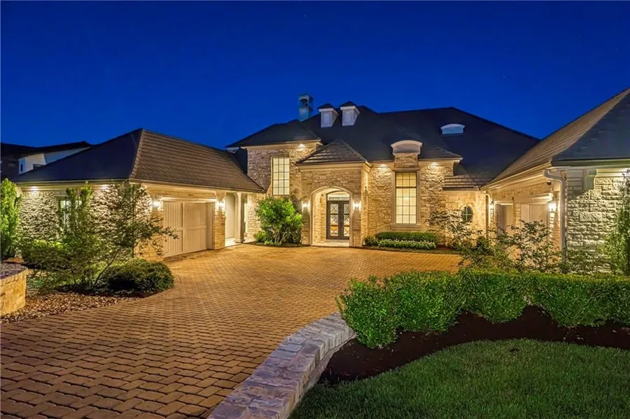 Parisian Contemporary home and is a true modern escape in the exclusive golf community of Flintrock Falls. The private level home site overlooks the fifth tee-box and the Texas Hill Country. Soft contemporary architectural details enhance the dramatic ceiling treatments throughout. Grand spatial living areas with a massive kitchen open to generous covered outdoor living area by an entire wall of operational glass panels. The home is only four years new and is ready for your enjoyment. Crisp white cabinets and walls are enhanced by stained wood floors, crown moldings and baseboards. Kitchen features a double island, professional Wolf appliances and white granite. Oversized master wing with custom built closet, elegant master bath and a sitting/exercise area. Upstairs game room with second outdoor living area and views for miles and two en-suite bedrooms. Interior design and finishes selec...