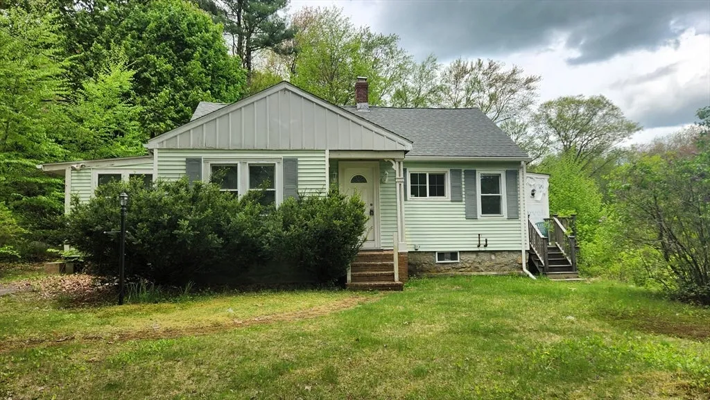 Contractors, flippers take note. 2 bedroom cape on nice lot on quiet country road. Unfinished renovation. Needs flooring in kitchen. Walls and ceiling blueboarded. Updated windows. Trimwork installed by master carpenter. Hardwood floors in living rm, dining rm and 1st fl bedroom. New tile around tub in bathroom. Newer roof. 2nd floor needs updating. Potential for 2nd bathroom. Two driveways. Spacious level back yard. So much potential! Cash or renovation loan. Great opportunity!