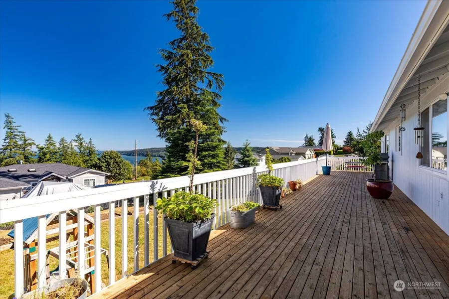 Welcome to this fantastic home in the highly sought-after Sunrise Hills neighborhood! This residence boasts captivating water views from its expansive new deck - perfect for entertaining or unwinding in serenity. Step inside to discover a spacious interior featuring 3 bedrooms, 1.75 bathrooms, as well as an extra finished room with a closet. The wide entryway invites you in with warmth and style. The open floor plan seamlessly connects the living, dining, and kitchen areas, creating an inviting atmosphere for gatherings and everyday living. Lots of windows for capturing natural light, as well as taking in the amazing views. Large corner lot offers many options. This community is wonderfully situated between Deception Pass and Oak Harbor.