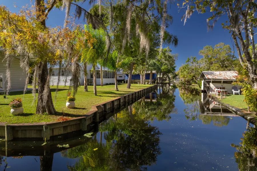 Come and make family memories with this gorgeous 160' +/- canal frontage on St. Johns River just north of Big Lake George. Peace and quiet abound, leave the hustle and bustle behind. Plenty of boating, fishing, and a great area for any kind of water sport activity. This property has 2 boat slips, one with boathouse and 3-ton lift. Recently replaced 160' +/- bulkhead and cap, including replaced wood in the boatslips as well. Extra large garage/storage (33'x25') building with 10' roll up door plus an attached covered porch (10'x25') also includes a half bath. The gorgeous home features 3 bedrooms and 2 baths with great attention to detail. High ceilings, crown molding, luxury vinyl plank flooring throughout. You will love the many upgrades and attention to detail. Mr. and Mrs. Clean live here.