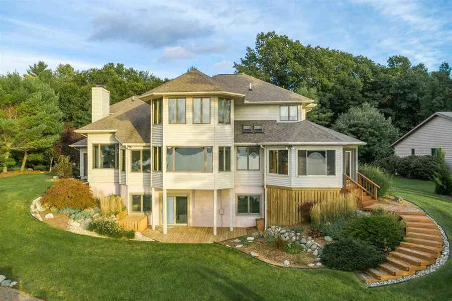 Gorgeous home on Sanford Lake with sweeping west facing views of the water from almost every room. This home's interior was professionally painted in 2022 and has 4 bedrooms and 4 full bathrooms, for a total of 4539 sq feet. The master suite with an amazing water view, en-suite consisting of a heated bathroom floor, heated towel rack, airjet tub, walk-in shower, makeup vanity, large walk-in closet and new ceiling fan. The spacious kitchen has a pantry and Cambria granite countertops. You will enjoy the large knotty pine sunroom and the vaulted ceilings in the living room, along with a modern gas fireplace. The fully finished walkout basement has a new ceiling & recess can lights, large bedroom and full bathroom, 21'x19' exercise room with shock absorbing 3/4? floors, bar with granite countertops, wood burner, game room, family room and 2 additional storage areas. Enjoy beautiful sunsets ...