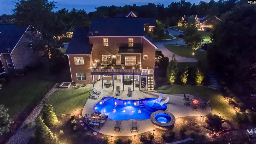 Stunning Executive All -Brick home in the highly sought after Lakeport Community! Located on a quiet cul de sac with no neighbors behind the property. This move-in ready home is 4714 square feet. It showcases 5 bedrooms, 4.5 baths, a breath-taking saltwater gunite pool, home theater and tons of entertaining space. The formal dining room has a coffered ceiling and real hardwood floors. The great room has a gas fireplace and opens into the eat-in kitchen. The kitchen boasts a gas range, stainless steel appliances and granite countertops. The large master suite is on the main level. The master bath offers a double vanity, garden tub, separate shower and water closet. There are his and hers walk-in closets. A room was converted for her walk-in closet and is simply amazing! A built-in speaker system is throughout most of the main floor. A laundry room and half bath complete the first floor. The second floor includes 3 sizable bedrooms, 2 full baths and an oversized FROG. The walk-out basement has recently been finished. This level showcases an amazing theater room, exercise/flex room, a bedroom, full bath, family room and a huge entertaining area. An expansive island with an upgraded pull-out microwave is perfect for entertaining. A custom built-in showcases a wine fridge and tailored-made shelving. A new two-story deck overlooks a resort like backyard. The salt water gunite pool and hot tub has a gorgeous stone waterfall feature and evening lighting. The private backyard also features a wood burning firepit area, professional landscaping and professional landscape lighting. Neighborhood amenities include a pool, sidewalks and community dock. Conveniently located minutes away from I-26, and tons of shopping and dining options. Children attend award winning Chapin schools. Must see this home in-person to appreciate all the details and upgrades!