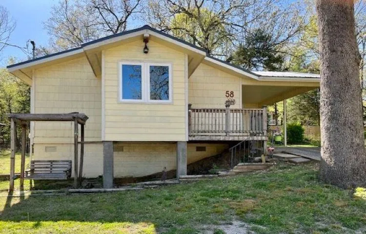 Don't miss this charming 2-bedroom, 1.5-bath home across the street from the peaceful waters of Lake Thunderbird. This beautifully maintained property offers the perfect blend of comfort and charm, featuring a spacious living/dining combo ideal for both relaxing and entertaining. Enjoy year-round lake views from the enclosed, heated and cooled sunroom, with gorgeous sliding barn doors that add a touch of rustic elegance. It's the perfect spot for morning coffee or a cozy evening retreat. A covered carport with an attached storage area offers convenience and protection, while an additional shop building with electrical provides even more space for tools, equipment, or recreational gear. Whether you're seeking a peaceful weekend escape or a full-time residence, this inviting property offers a wonderful opportunity.